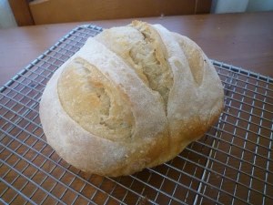 This is the easiest bread I’ve ever baked, and frankly tastes like it’s straight from a bakery. The minute I pulled the first crusty loaf out of the oven I knew that this would become my “go-to” bread recipe. The ingredients and method can be found here.