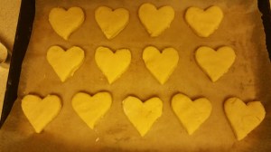 Cut out cookies and re-roll scraps as needed. Depending on the size of your cookie cutters, this will make 3-4 dozen cookies.