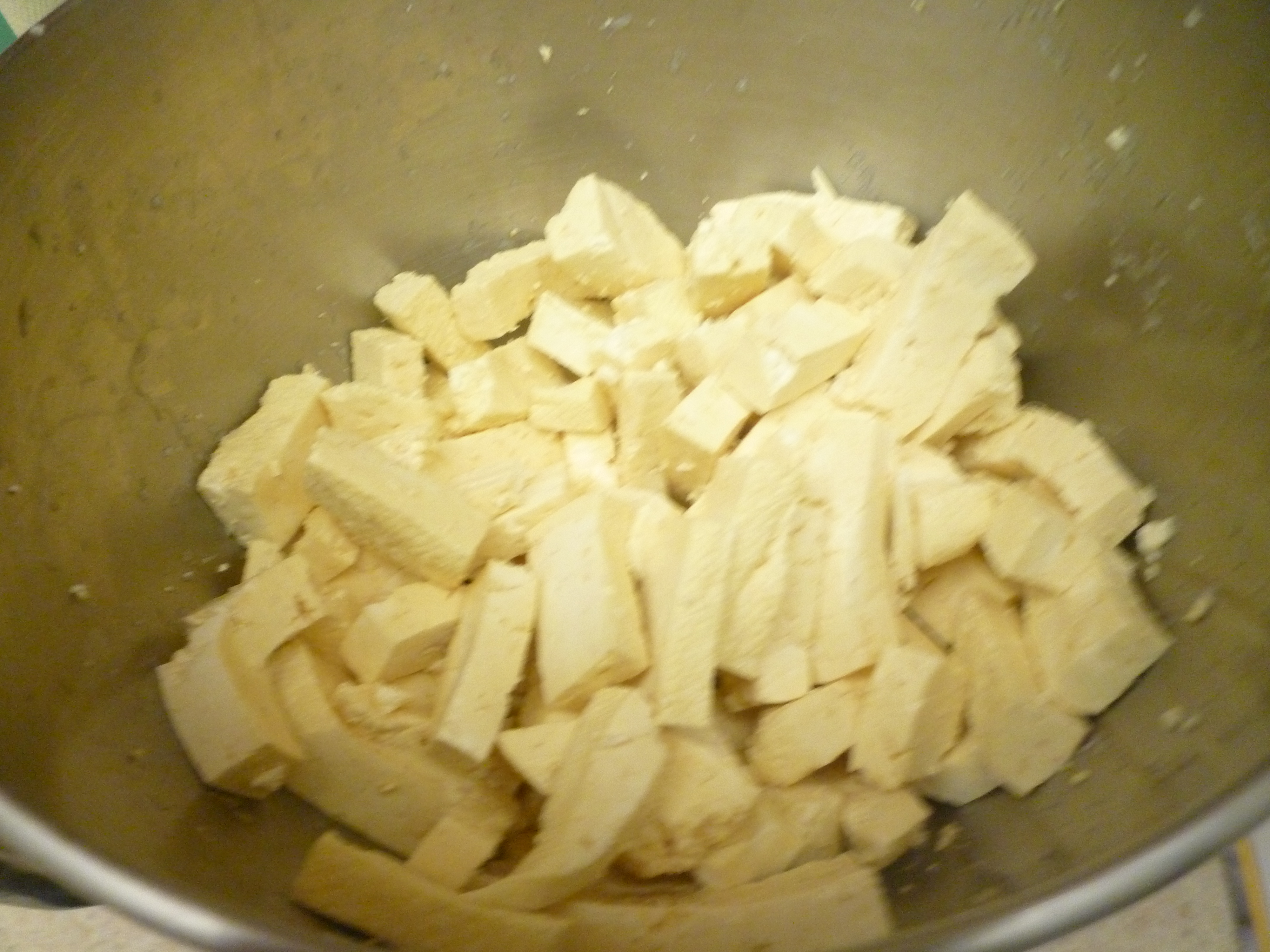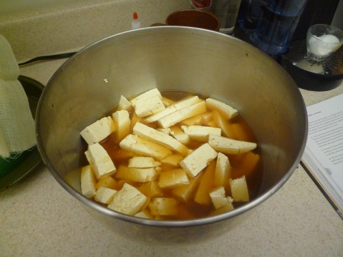Dice the pork into 1 in. cubes and place in a pot. Cover with water by 2 in., bring to a boil, and drain the pork. Return the pork to the clean pot.